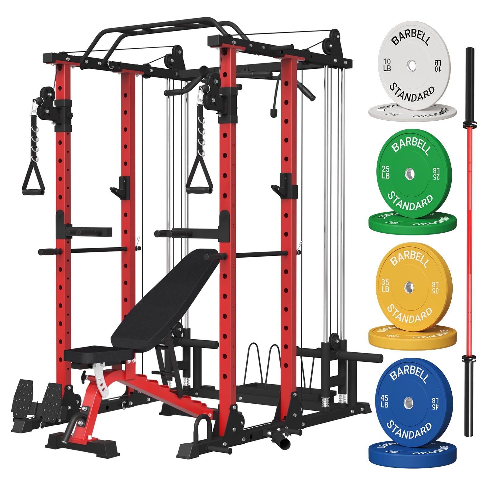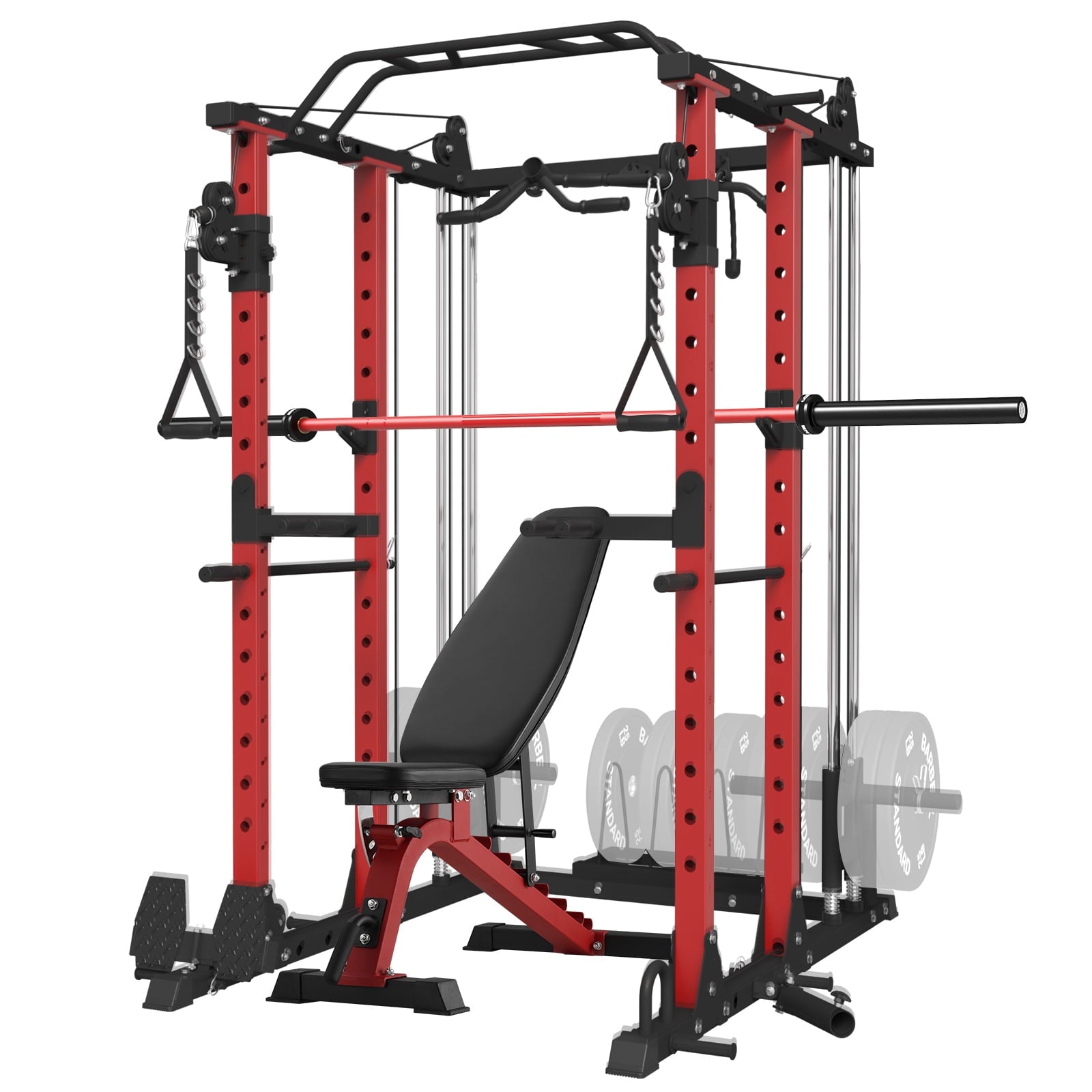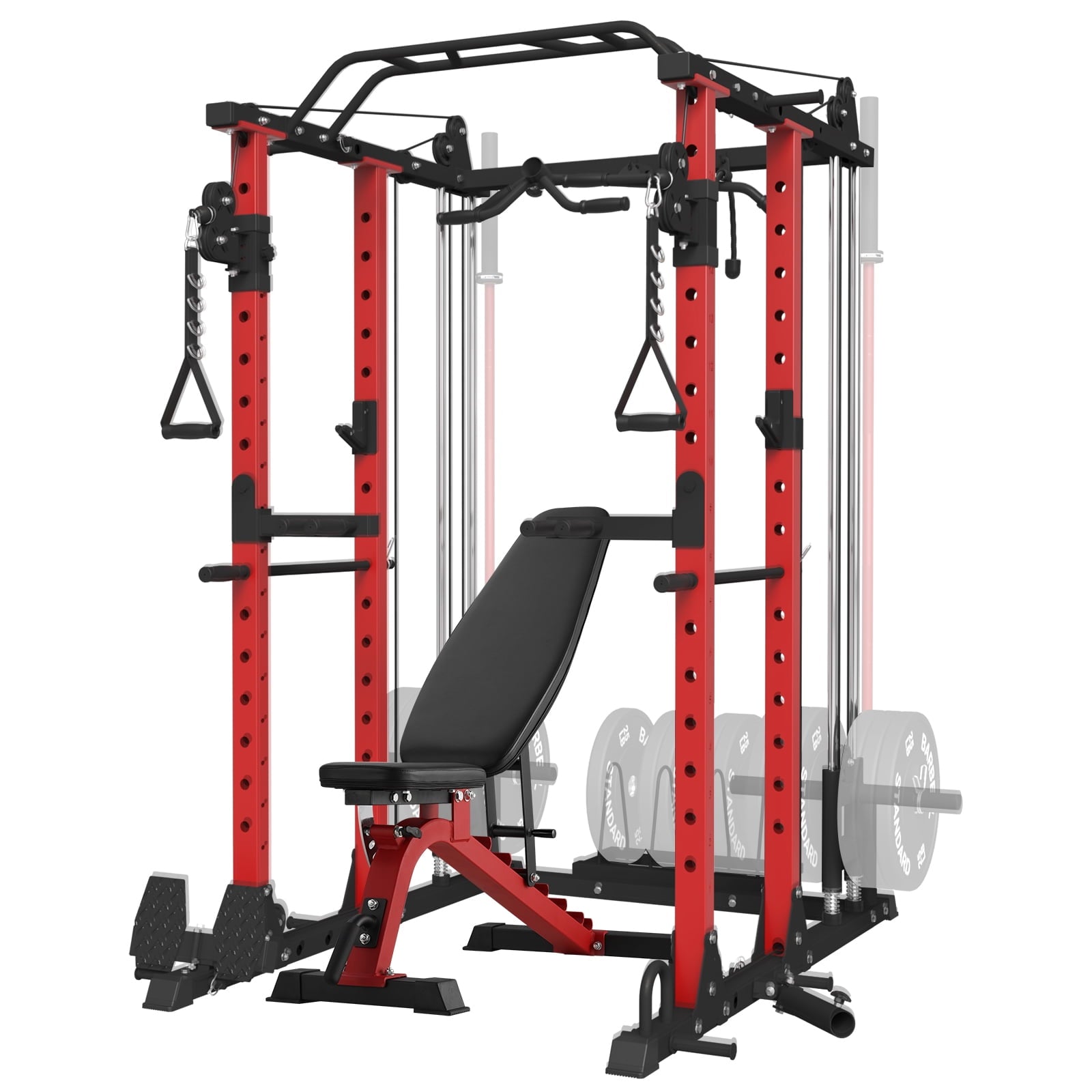 Mikolo Multi-Functional Power Rack, Power Cage with Dual Pulley System, Strength Training Squat Rack, Cable Crossover Machine Home Gym