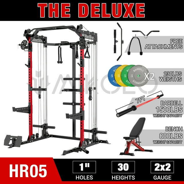 Mikolo Power Cage, Squat Rack with Dual Pulley Cable Crossover System, Multifunction Free Weight Home Gym Workout Machine with Attachments